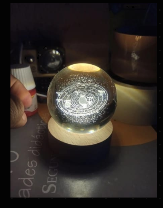 Nos lampes sont fabriquées en verre très résistant et ont une base en bois illuminée qui comprend une connexion USB avec une gravure laser 3D de haute précision.
